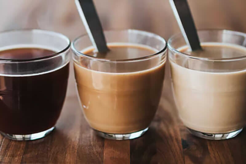 Composed of a single espresso shot and hot milk, with the surface topped with foamed milk. Prepared with an espresso machine.